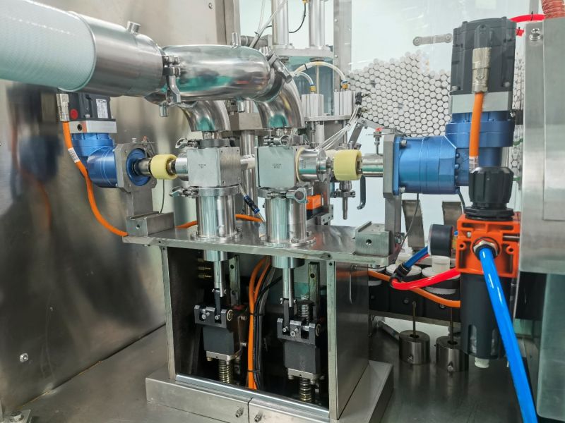 Tube filling machinery adopted self-clean system using compressed air blowing and vacuum suction to clean inside tube. The depth of the blowing head lower down into tubes is controllable and adjustable in a reliable way. machinery is equipped with a sensor to check whether the operation is executed. If the operation is not executed, the tube filling machines will stop and alarm.。